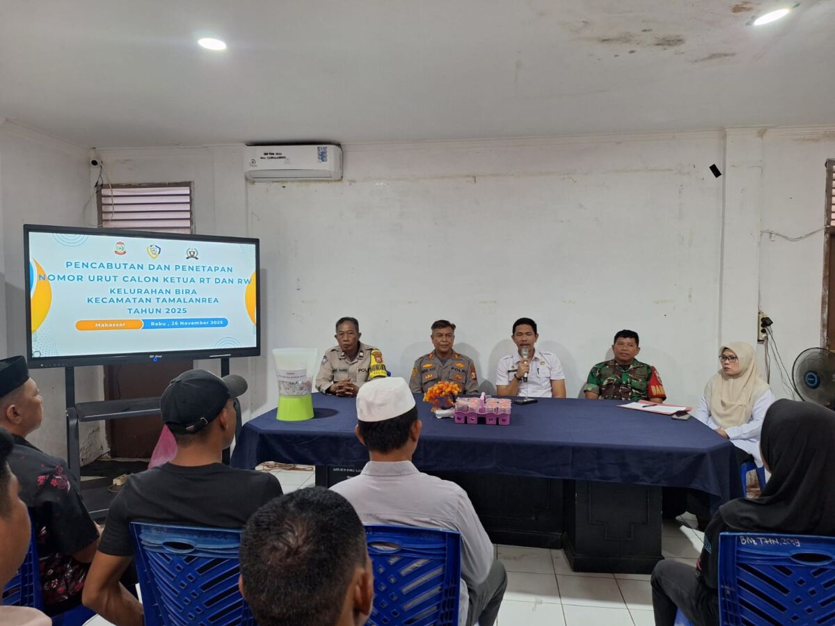 Pencabutan nomor urut tersebut digelar di kantor kelurahan Bira, Jl Tol Ir Sutami. Kegiatan tersebut dipimpin langsung Lurah Bira, Andi Zakaria Razak, yang turut didampingi Binmas dan Babinsa, sebagai bentuk pengawalan agar jalannya tahapan pemilihan berlangsung aman dan transparan.